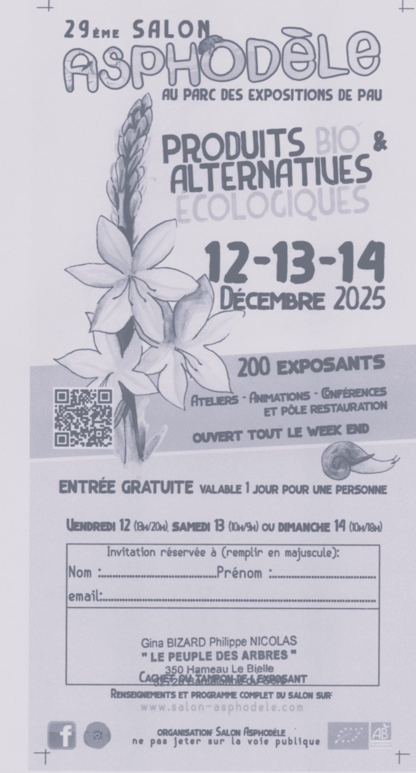 Nous vous informons comme tous les ans du rendez-vous incontournable du salon Asphodèle les 12, 13 et 14 décembre 2025.